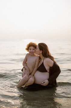 Lari's session held a special place in my heart, as I have known her for quite some time now. My affection for her and her son Nathan runs deep, and I had the pleasure of capturing their moments together on a previous occasion. It was truly an honor to photograph them once again during this beautiful chapter of Lari's life - her second pregnancy. We put in a great deal of effort to ensure that everything was perfect for her session. Carefully selecting the outfits, we paid meticulous attention to detail. We created a harmonious color palette, and I convinced Lari that immersing herself in the ocean water would be a truly unique and captivating idea, considering the organic nature of pregnancy. In my maternity sessions, I strive to focus on the pregnant belly and embracing the miracle of motherhood, rather than drawing attention to the clothes. It is about celebrating the beauty and grandeur of generating life within oneself. I find that water symbolizes both fluidity and lightness, as well as strength - a metaphor that resonates deeply with women during the gestational period. So, what are your thoughts? Wasn't Lari's session truly breathtaking?